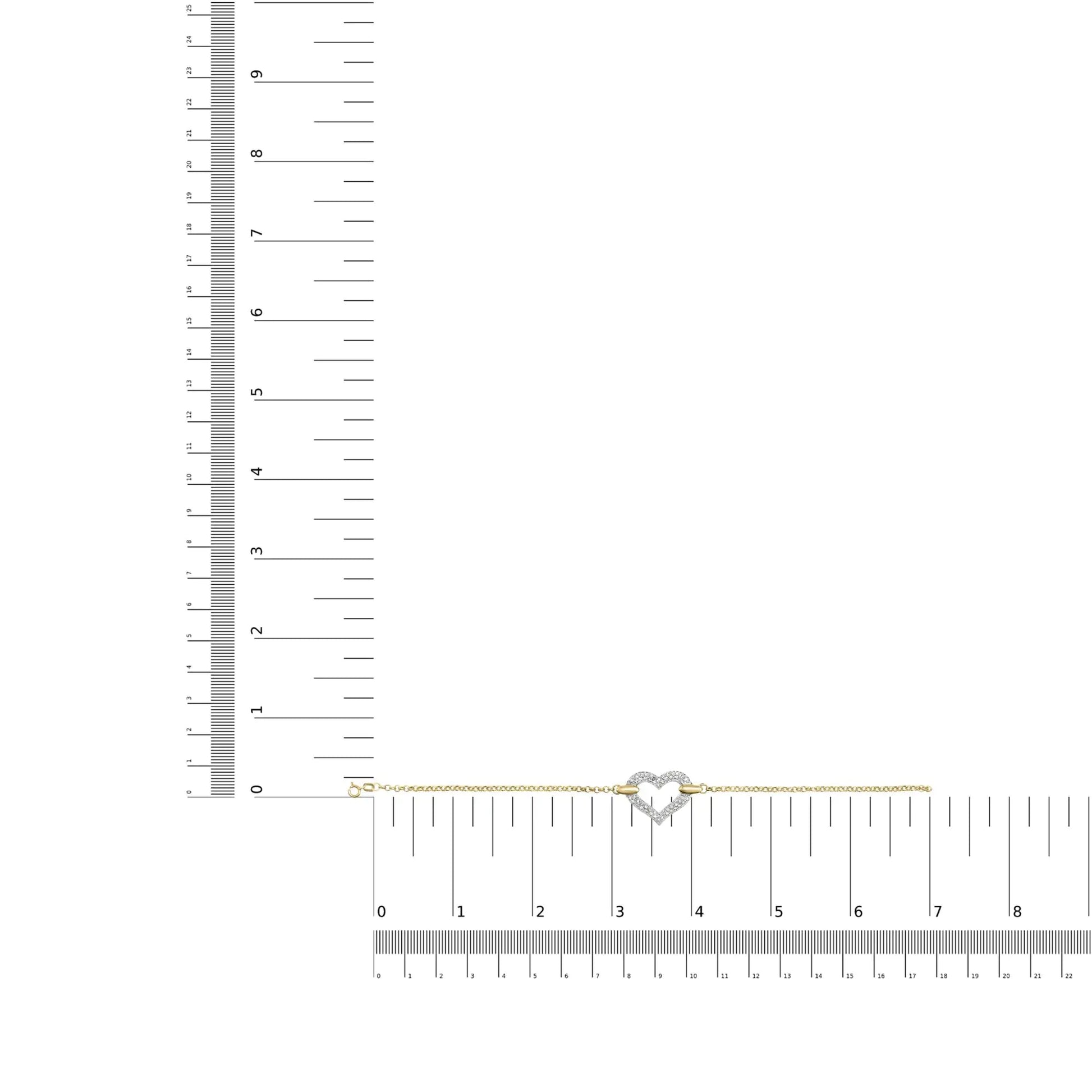10K Two Tone Gold 1/4 Cttw Diamond Encrusted Heart Charm 7" Bracelet