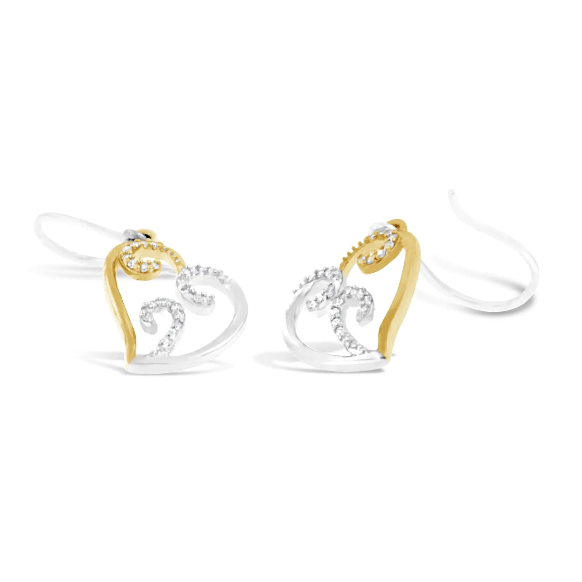 10K Two-tone Gold Round Diamond Heart Dangle Earrings