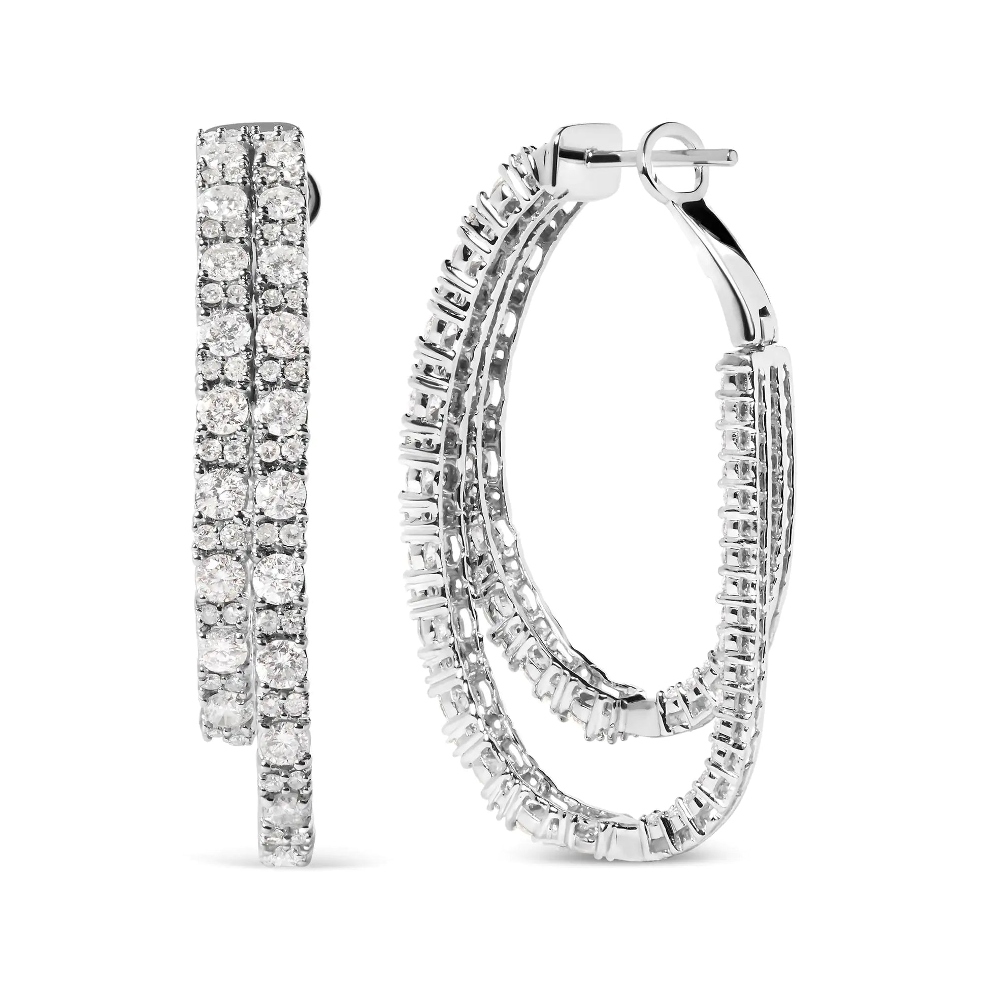 14K White Gold 4.0 Cttw Diamond Asymmetrical Inside Out Double-Hoop Earrings (I-J Color, I1-I2 Clarity)