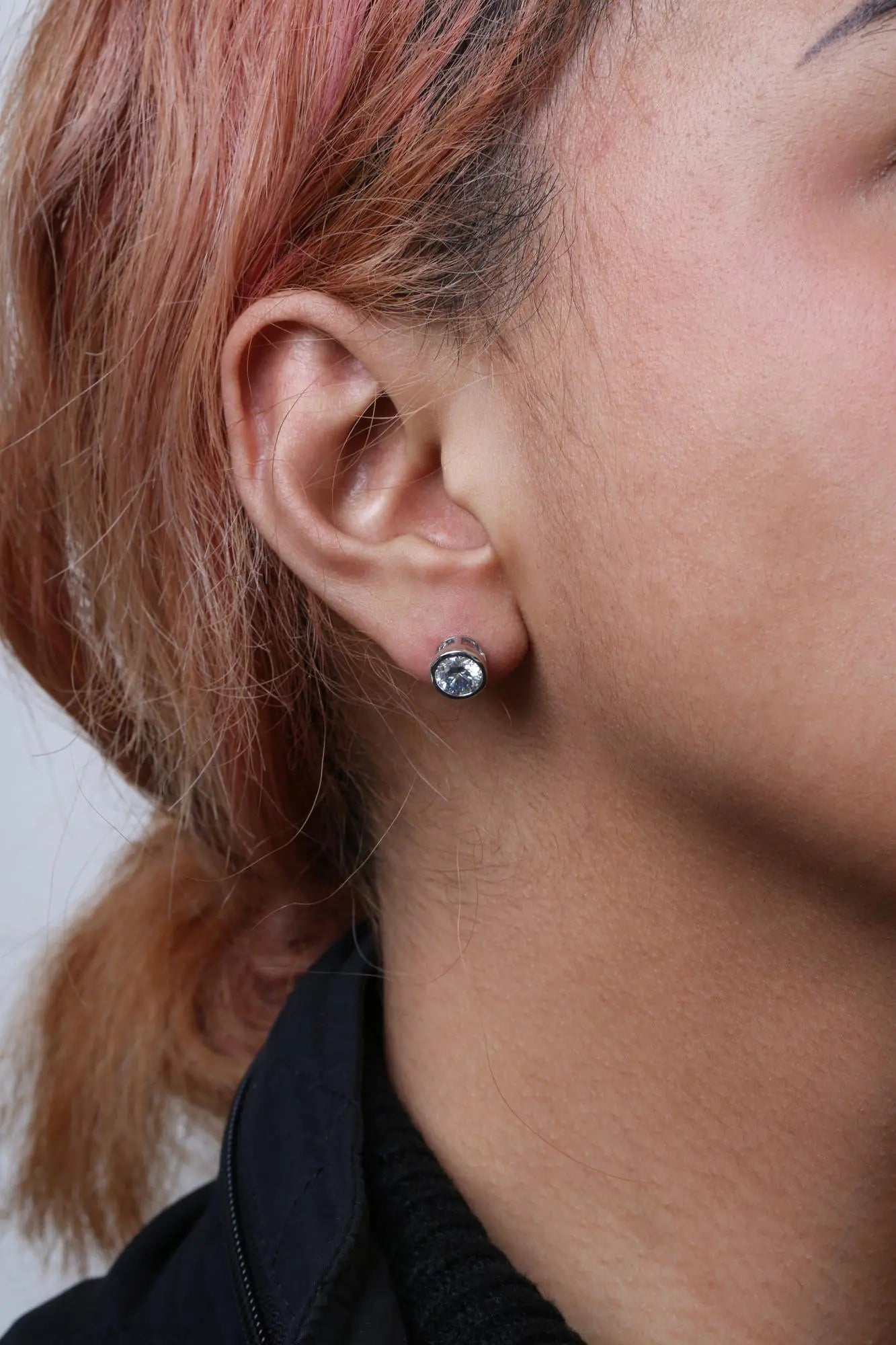 14K White Gold Lab Grown Diamond Screw-Back Classic Bezel Solitaire Stud Earrings (G-H Color, VS2-SI1 Clarity)