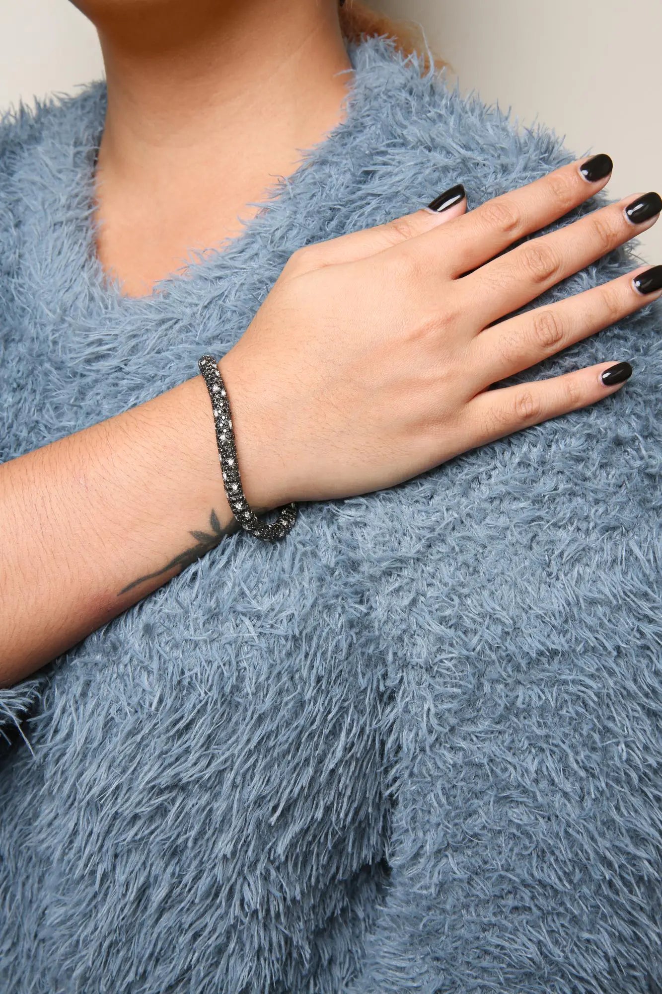 This luxury bracelet is breathtaking with over 840 total diamonds in a stunning array of colors to enrich your style and pair perfectly with any ensemble. Crafted of genuine 18k white gold, this link bracelet is covered in round heat-treated black diamonds and round white diamonds throughout the entire surface area, all of which are nestled in prong settings. This luxurious bracelet will slither around your wrist like a glistening serpent; when the occasion calls for a grand entrance, make yours in this ravishing diamond bracelet. This statement bracelet fastens with a very secure box clasp. It is 7 inches long, best for small and medium sized wrists. The allover diamonds total 20 cttw and are of an approximate Black and G-H Color with SI1-SI2 Clarity.