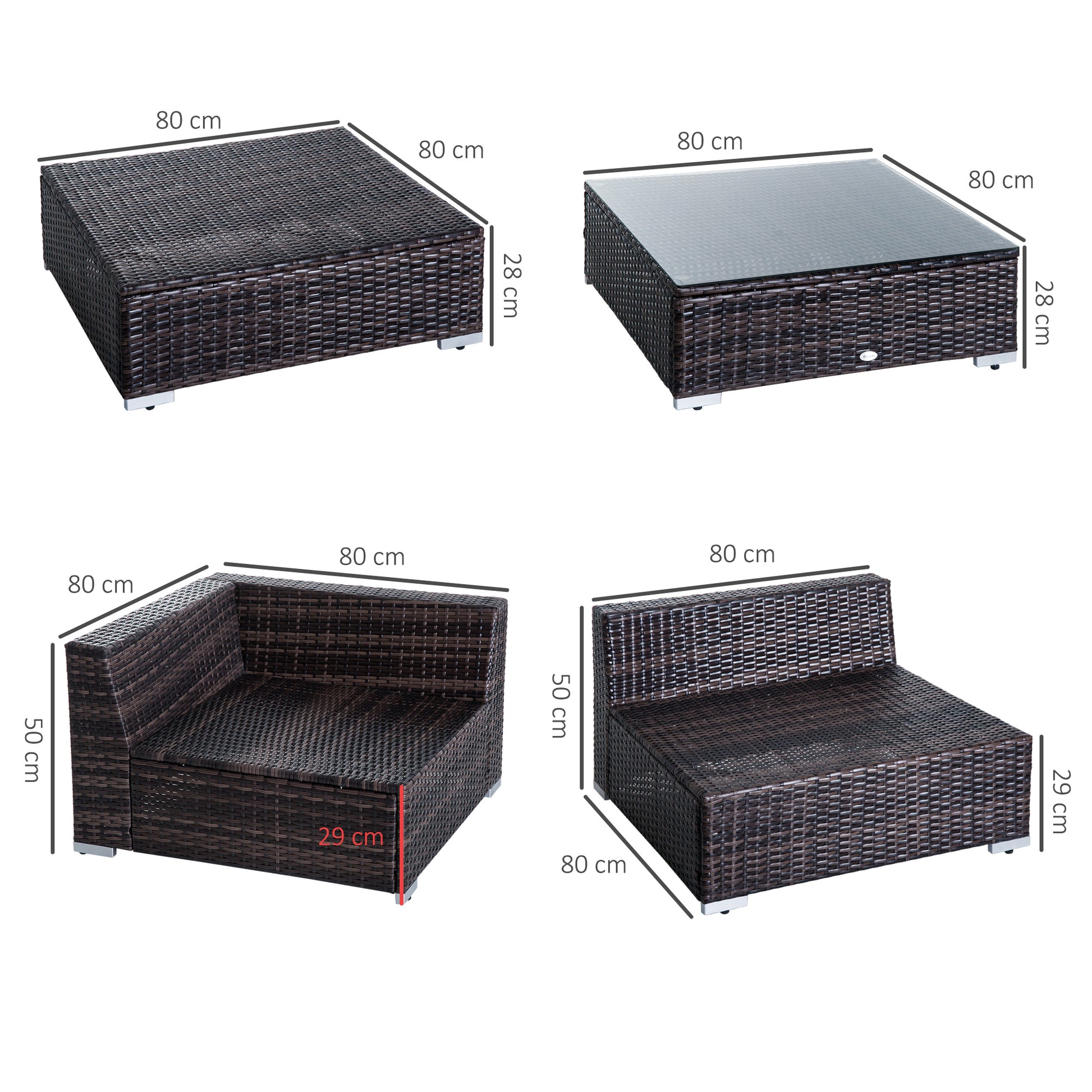 - Corner Sofa Size: 80L x 80W x 50H cm