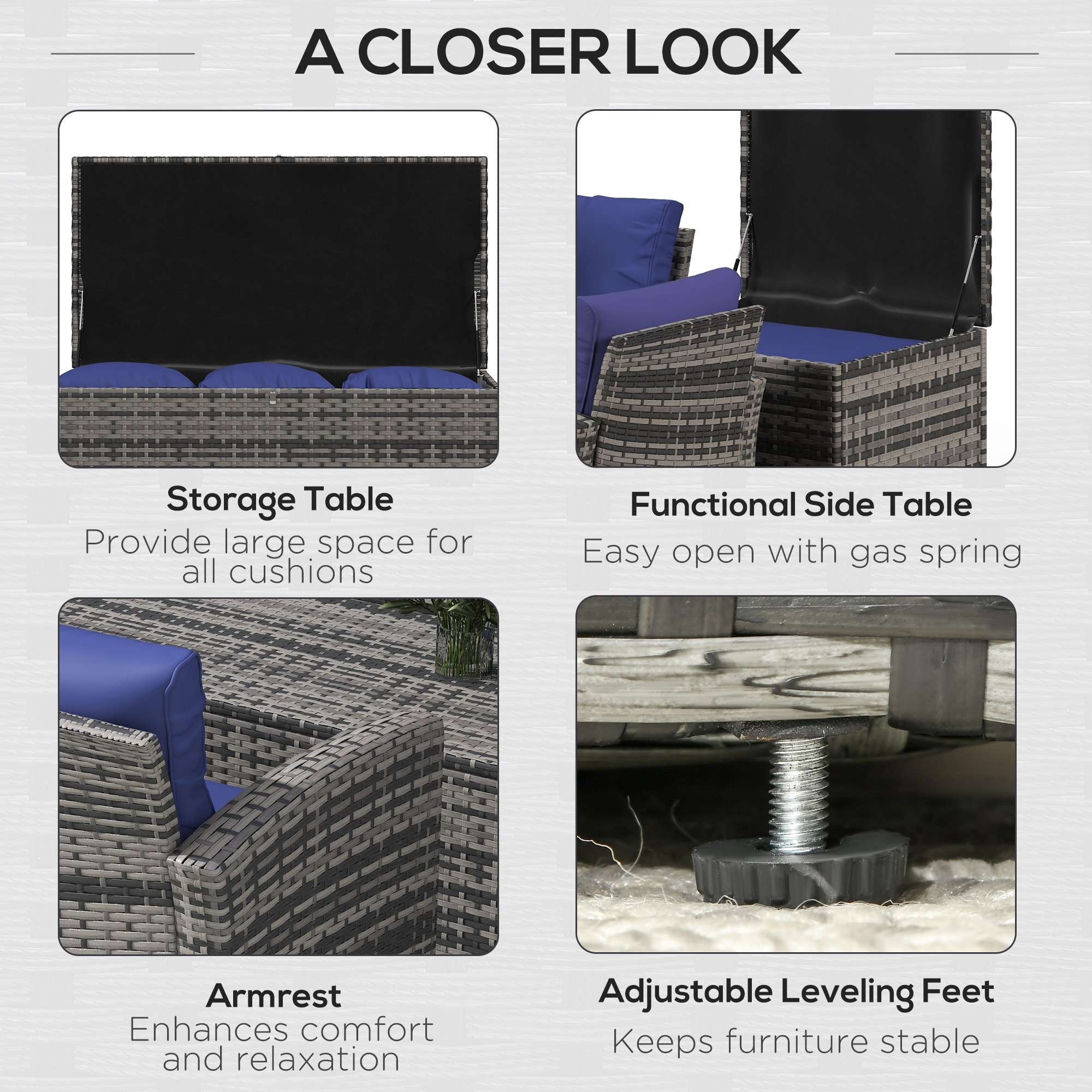 - Colour: Mixed Grey Rattan, Navy Blue Cushion