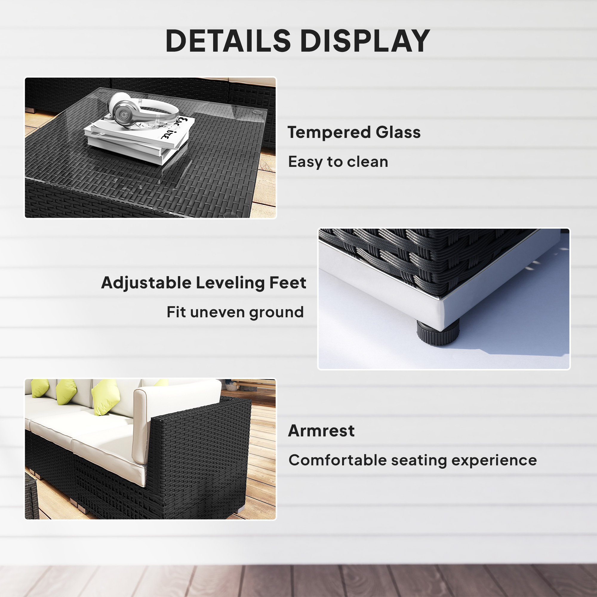 8 Piece Rattan Corner Sofa Set With Wide & Deep Seat, Assembled Aluminium PE Rattan Garden Furniture Set With Thick Cushions And Glass Top Table For Outdoor, Conservatory, Black