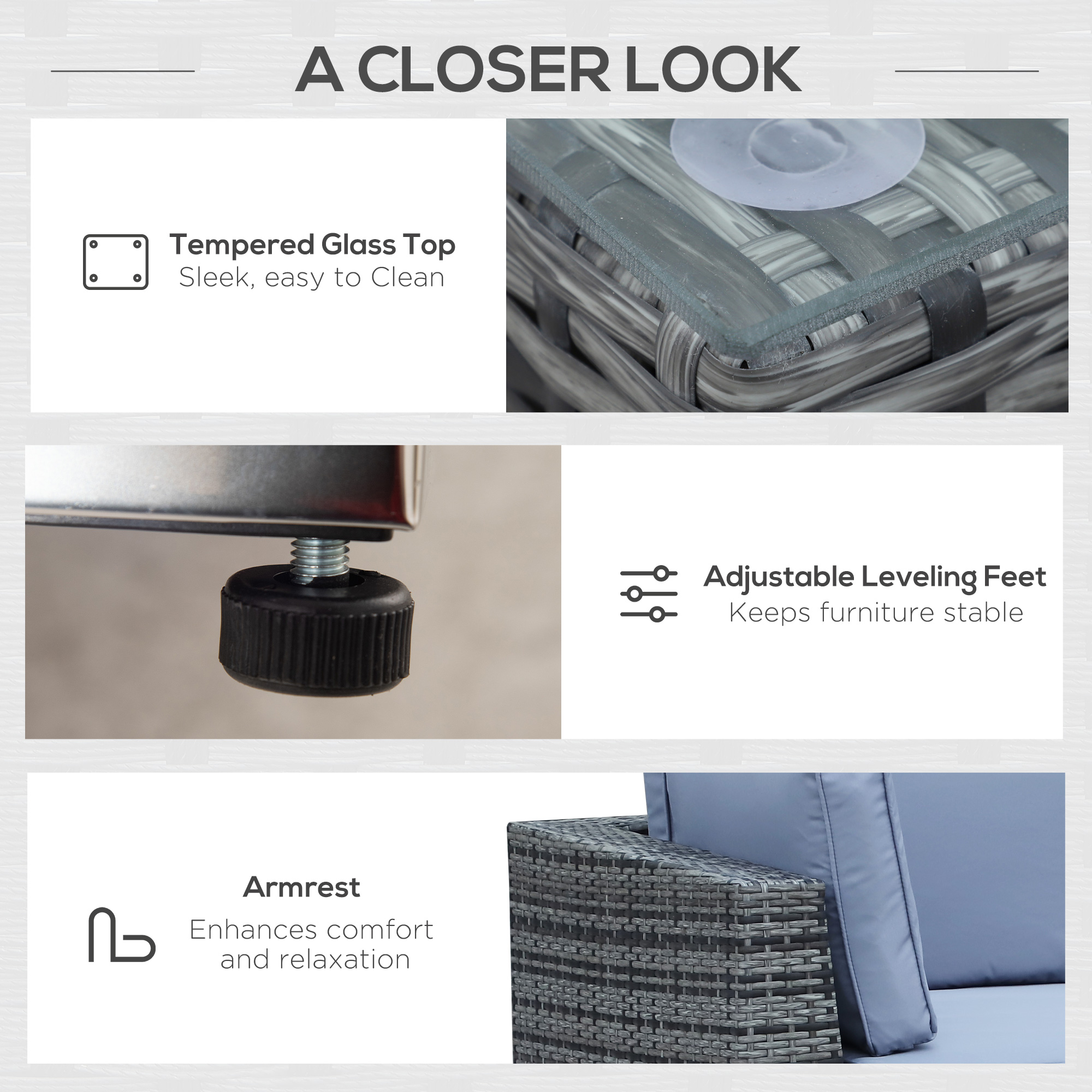 8 Piece Rattan Corner Sofa Set With Wide & Deep Seat, Assembled Aluminium PE Rattan Garden Furniture Set With Thick Cushions And Glass Top Table For Outdoor, Conservatory, Grey