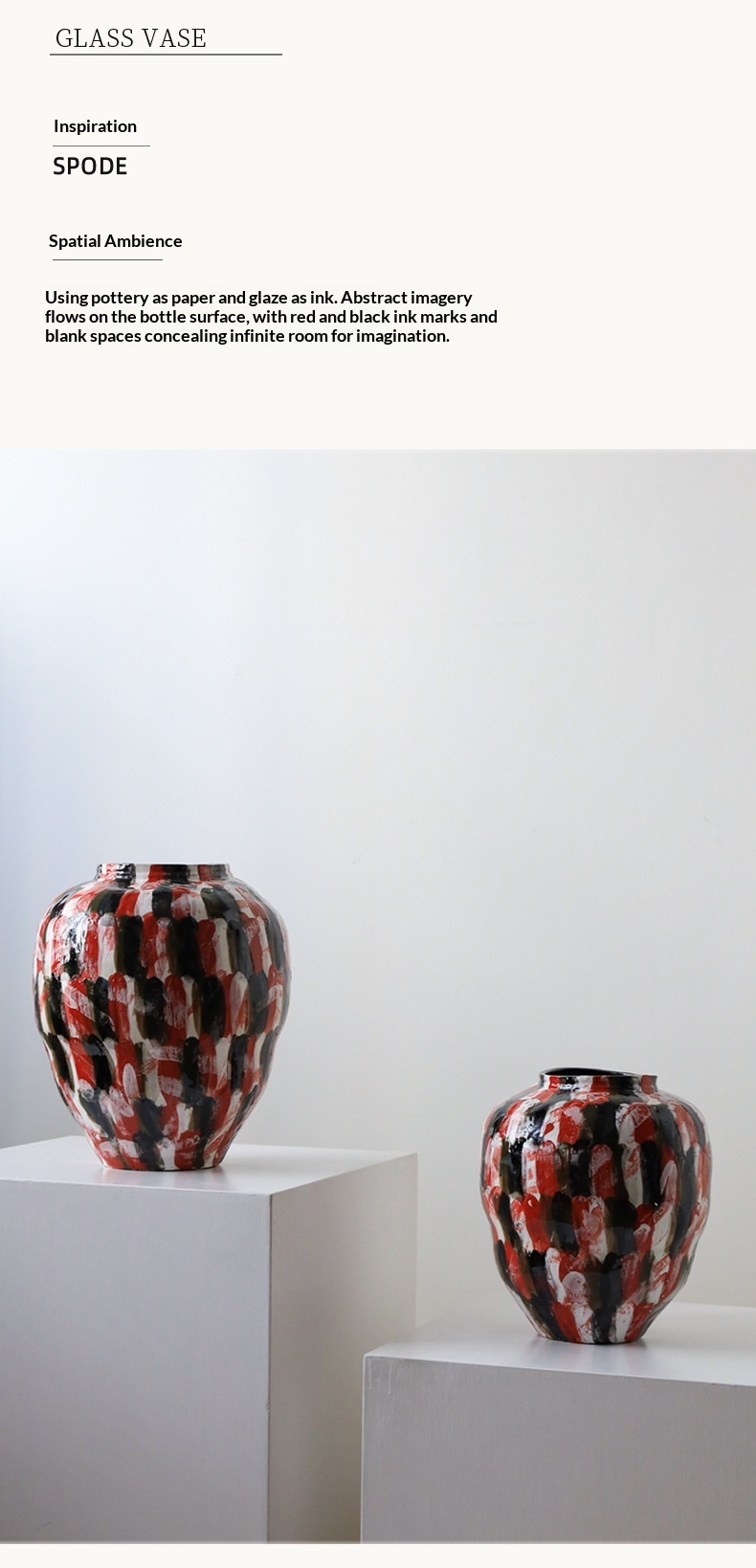 Dimensions: Large Belly Vase in Red and White (Large), Large Belly Vase in Red and White (Small)