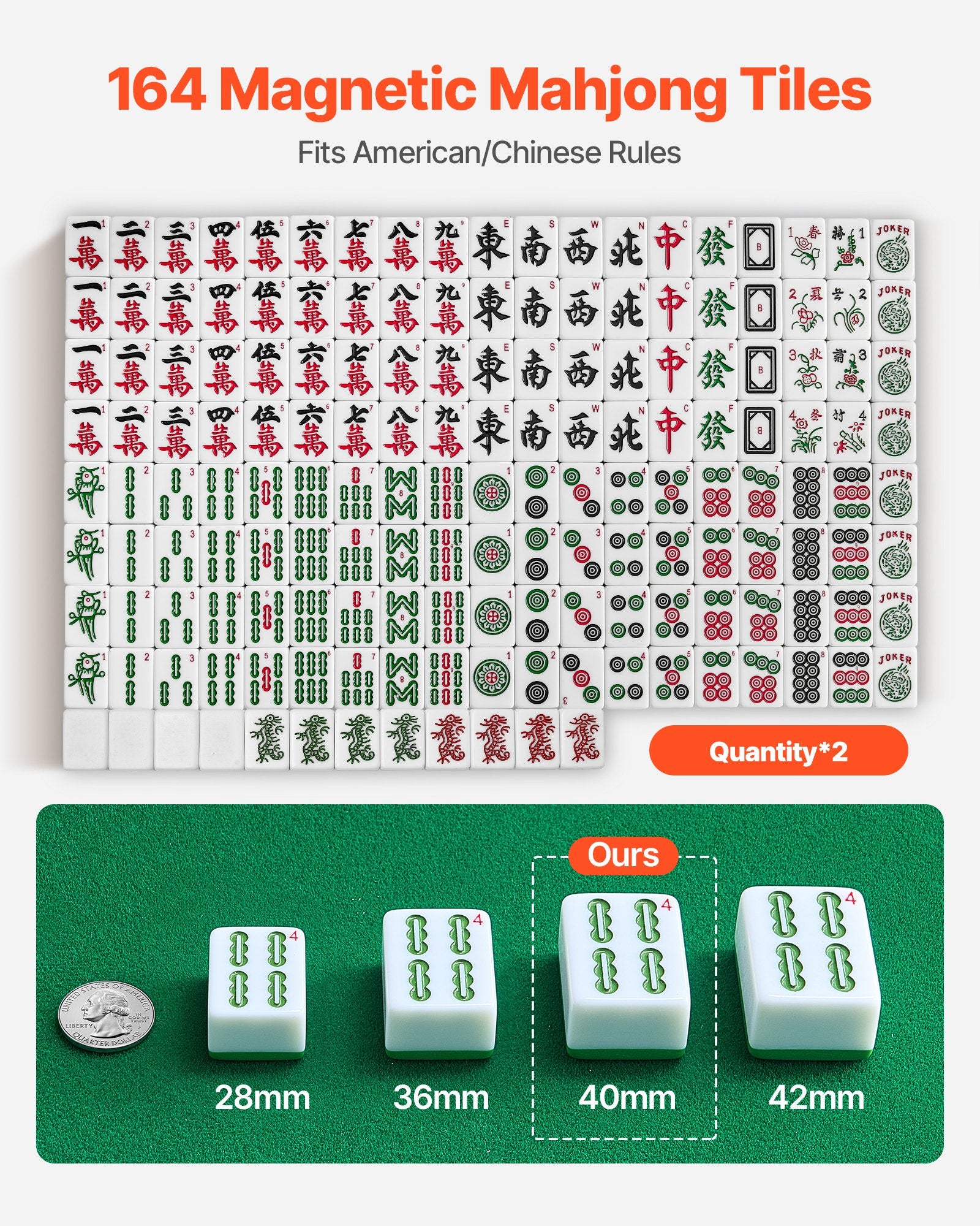 American/Chinese Mahjong Set: This mahjong table comes with 164 high-quality tiles measuring 1.57 x 1.14 x 0.83 in. Each tile includes Arabic numbers or letters, making them easy to recognize even for players unfamiliar with Chinese