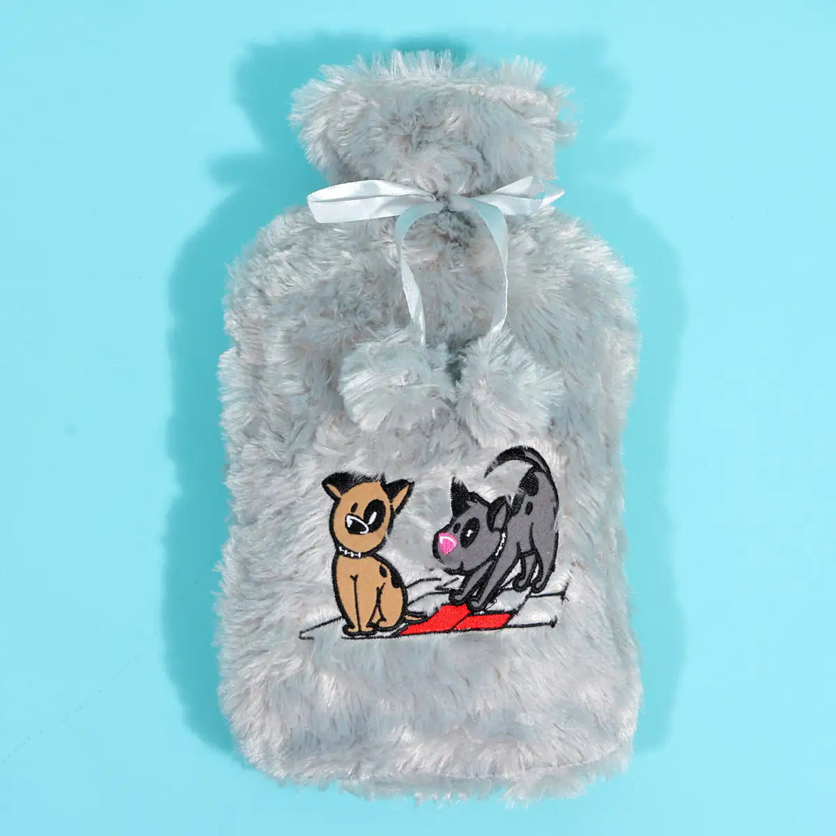 Wrapped in a super soft, grey plush cover with an adorable dog design, this hot water bottle is as huggable as it is functional! The plush cover makes it comfortable to hold close and protects your skin from direct contact with the hot bottle. Plus, the cover is removable and machine washable for easy care.