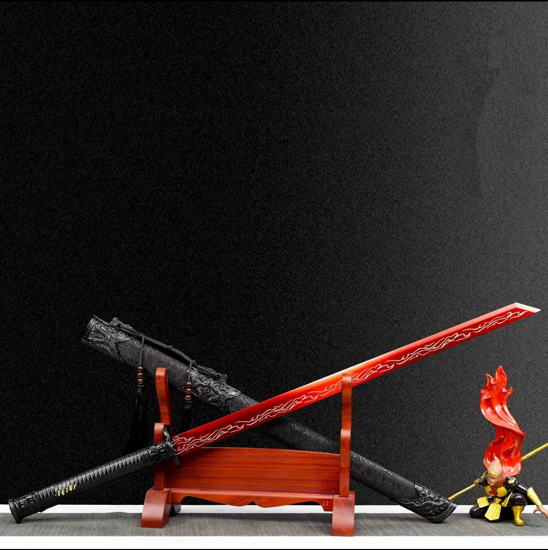Blazing Flame Integral Tang Dynasty Horizontal Sword High Manganese Steel Self-Defense Cold Weapon Collection-Grade Unsharpened