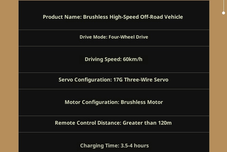 Special features: light control, full proportion, metal differential, metal wheel hub