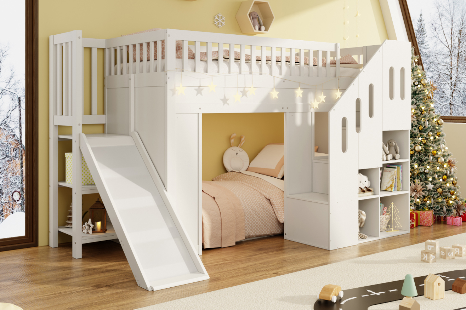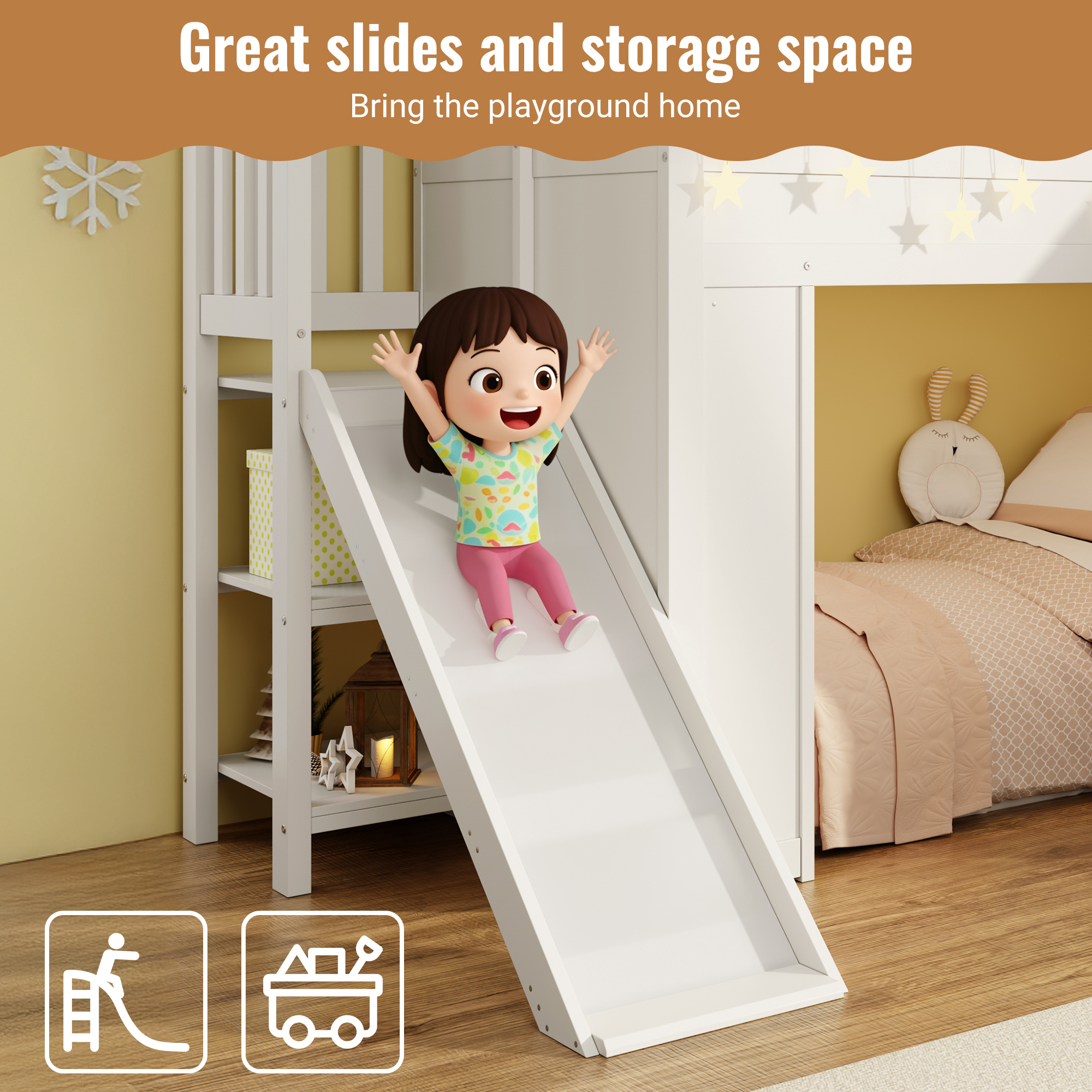 - Slide + Storage: Double the Fun. Start your magical adventure every day with the slide! The hidden storage space under the slide combines play and storage, making tidying up fun.