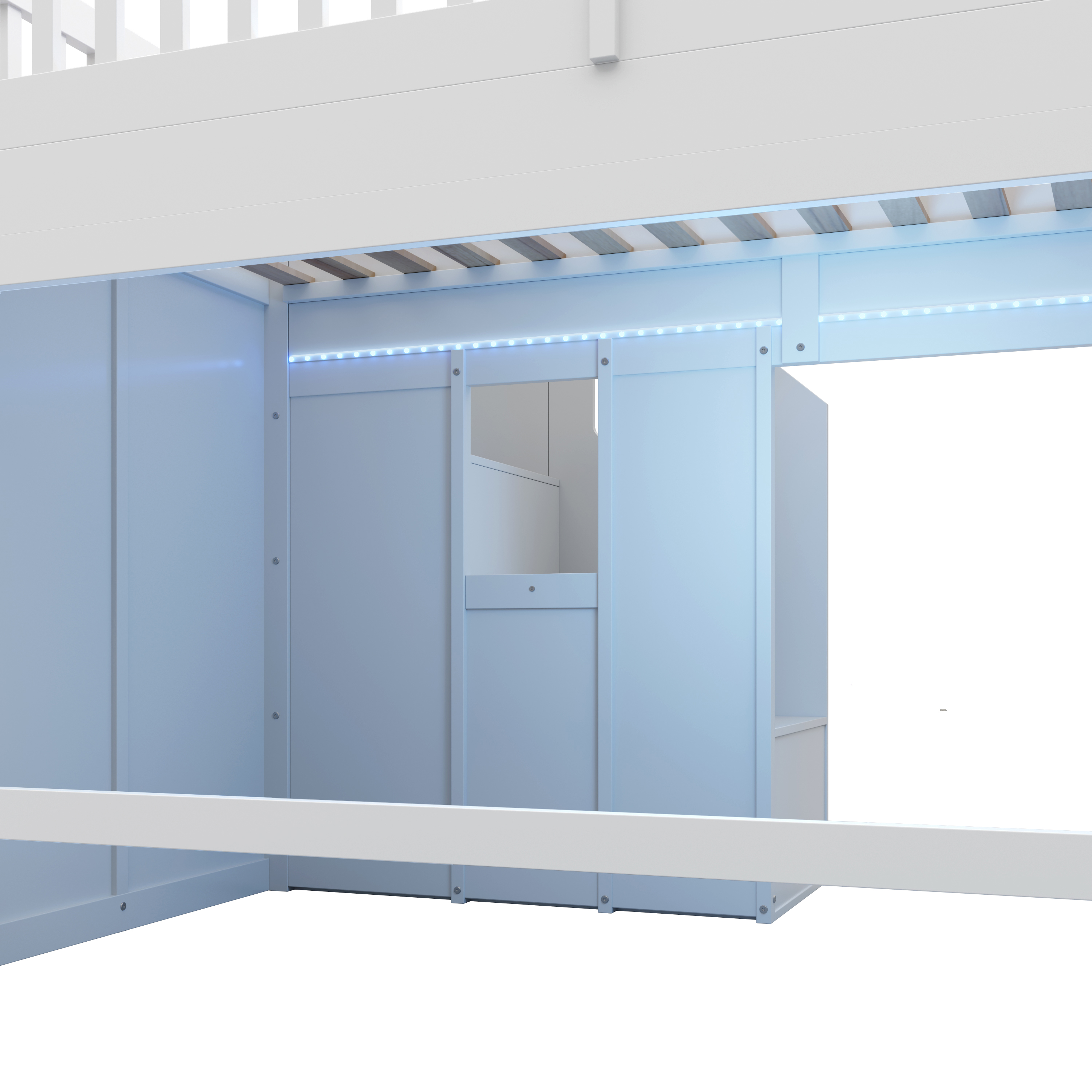 - Movable LED Strip: Illuminates Creative Corners The lower bed features an adjustable LED strip that can be mounted at the front or back. The soft light provides children with a sense of security and allows them to become the brightest creative stars in the night sky.