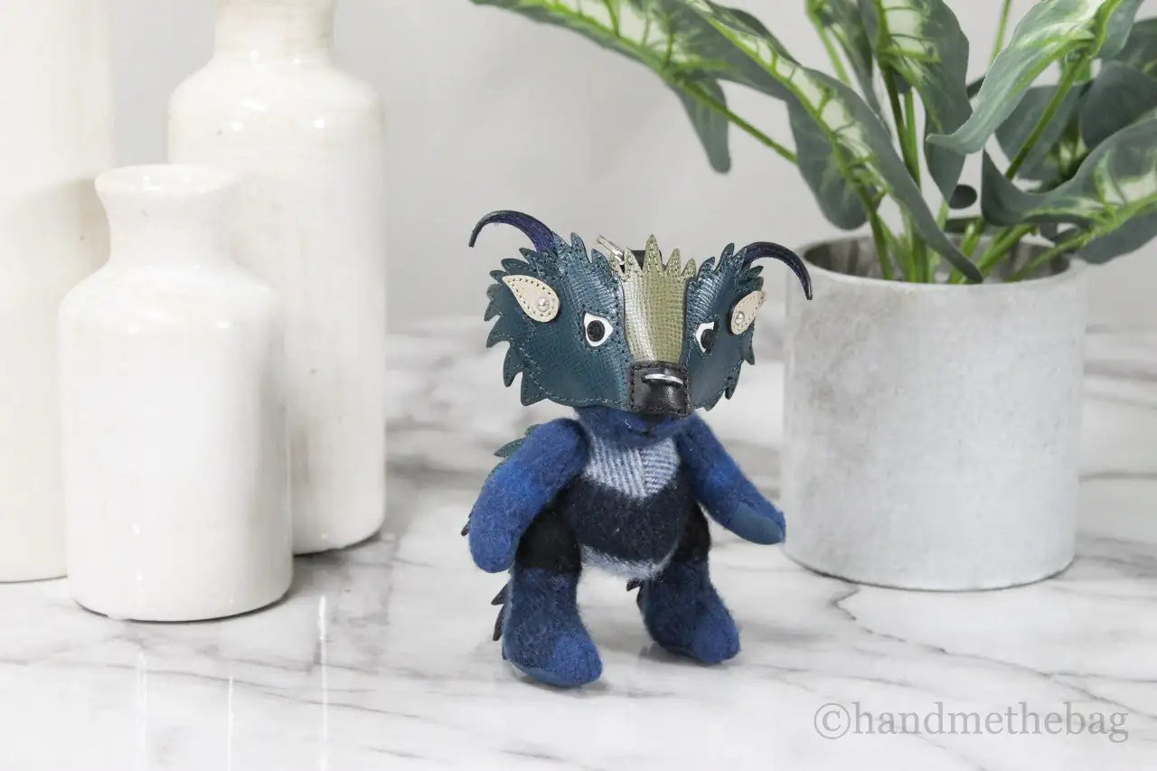 The Burberry Thomas Bull Bag Charm Keychain is crafted from delicate materials such as cashmere and leather, which may show signs of wear over time. To preserve its quality and appearance, avoid exposure to water, direct sunlight, and harsh chemicals. The leather trim and metal components are subject to natural aging and may develop a patina with use. Handle with care to maintain the integrity of the materials. Product dimensions and availability are subject to change.