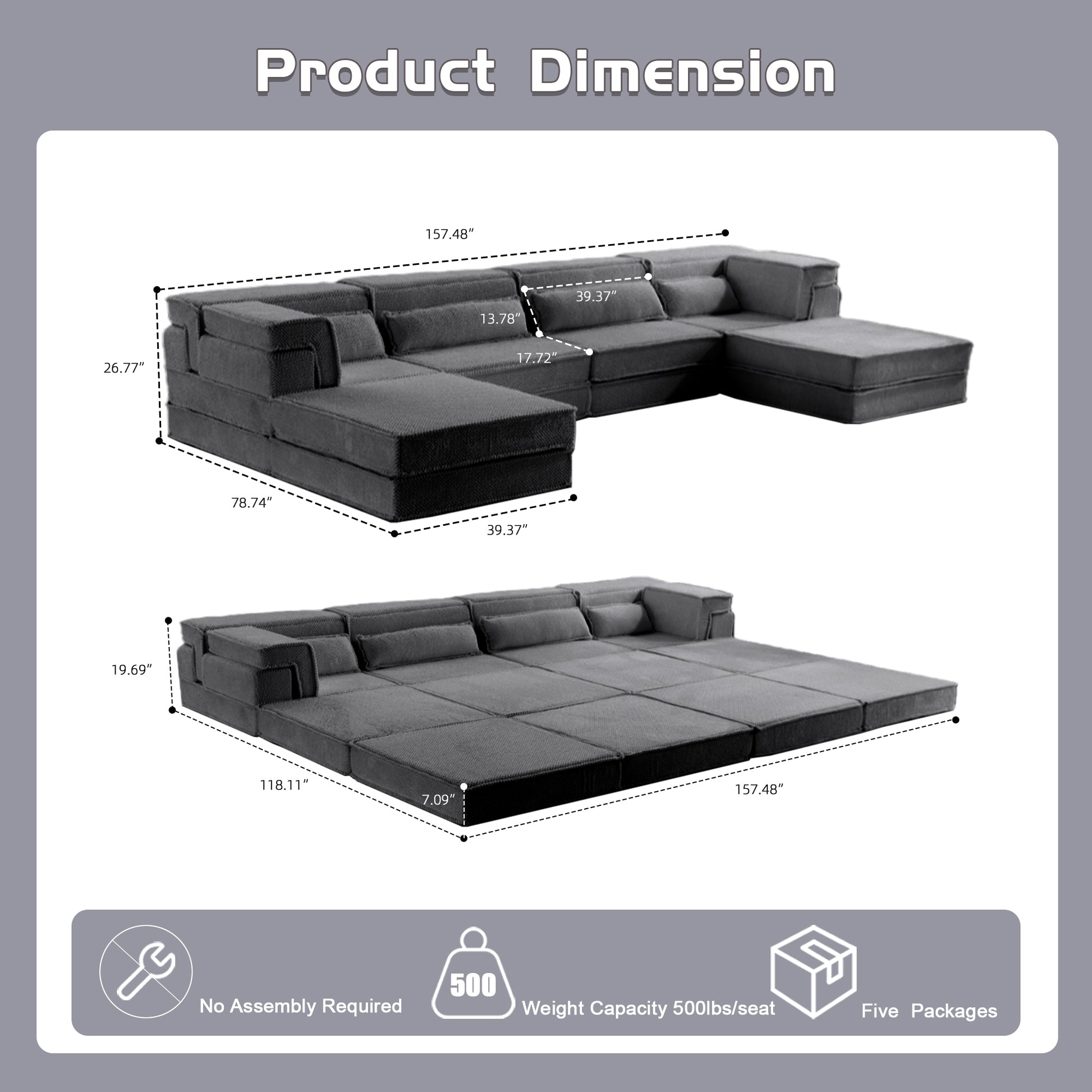 - 【No Assembly Required & Tips】The Convertible Modular Sectional mahjong sofa don't need to assemble. Tips: It takes time for the sofa to expand, Please unpack and wait 48-72 hours for full rebound.