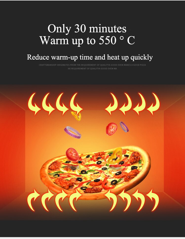 But that's not all – our oven is also energy efficient, helping you save on electricity bills while still achieving the perfect bake. And with a heating tube of 12 (6 on the top and 6 on the bottom), you can rest assured that your pizzas will be cooked evenly and quickly.