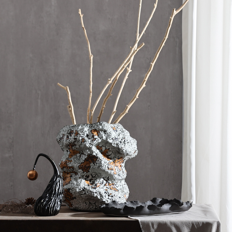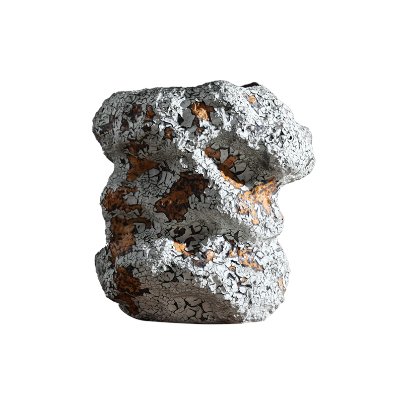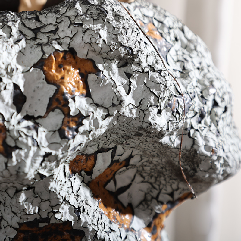 Gray-and-white Wabi-sabi Style Handcrafted Rustic Ceramic Flower Vase
