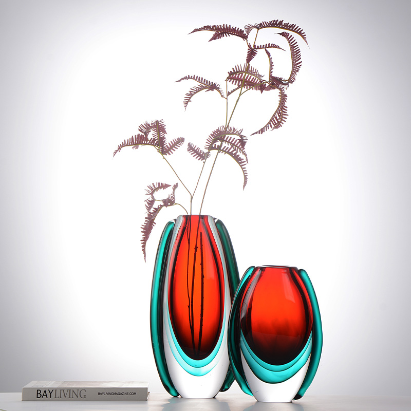 High-end Light-luxury Wabi-sabi-style Glazed Vase In Red And Blue