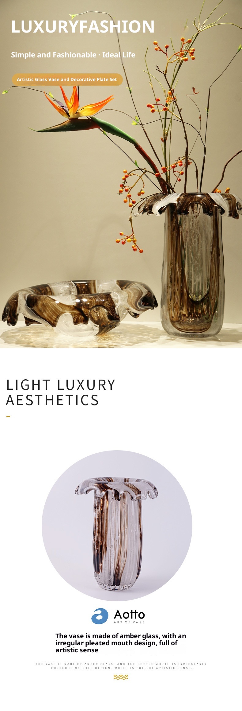 Italian Creative Light Luxury Crystal Flow Glass Vase