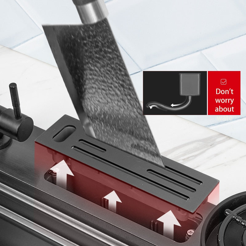 Upgrade your kitchen with style and functionality with our 304 Stainless Steel Waterfall Kitchen Sink. The sleek black finish and large single bowl design make it the perfect choice for any modern kitchen. The built-in touch waterfall faucet adds an extra touch of luxury and convenience, making it easier than ever to wash dishes and cook with ease. Made from 304 stainless steel, this sink is both durable and easy to clean, ensuring that it will last for years to come. Don't settle for a boring and inefficient sink - upgrade to our Waterfall Kitchen Sink today and enjoy the benefits of a stylish and functional kitchen!