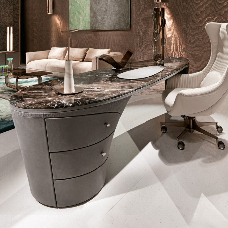The exceptional craftsmanship and attention to detail make this desk an investment in quality and style. The use of luxurious marble is not only beautiful, but also highly durable, ensuring that your desk will stand the test of time. The designer special-shaped desk is the perfect addition to any home or office, adding a touch of sophistication and luxury to your workspace.