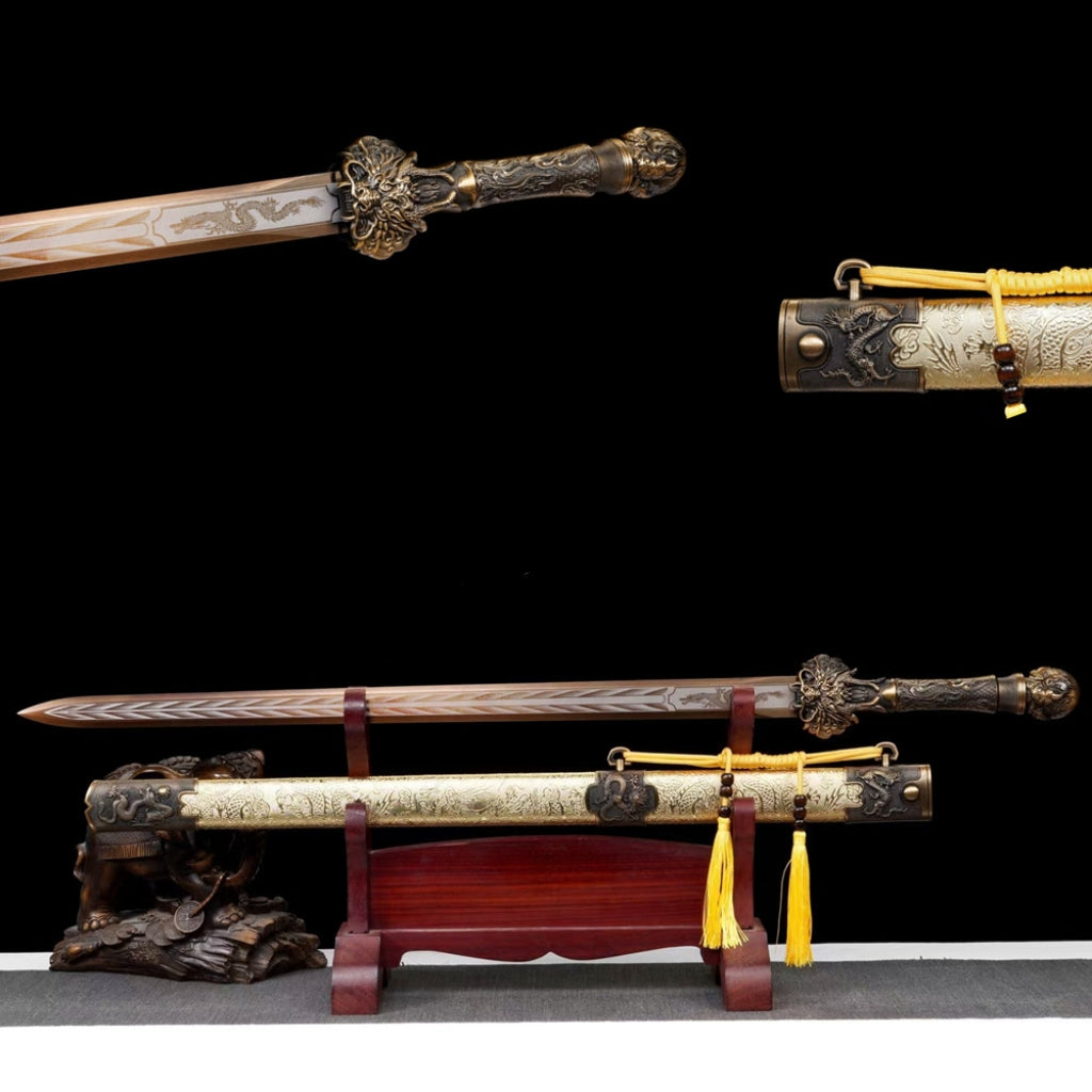 Long Style Integrated High Manganese Steel Swords Tang Jian, Dragon King Sword, Han Jian Unsharpened Cold Weapons For Self Defense & Decoration