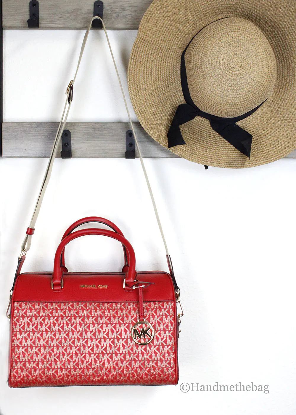 Michael Kors Travel Medium Bright Red Signature PVC Duffle Bag