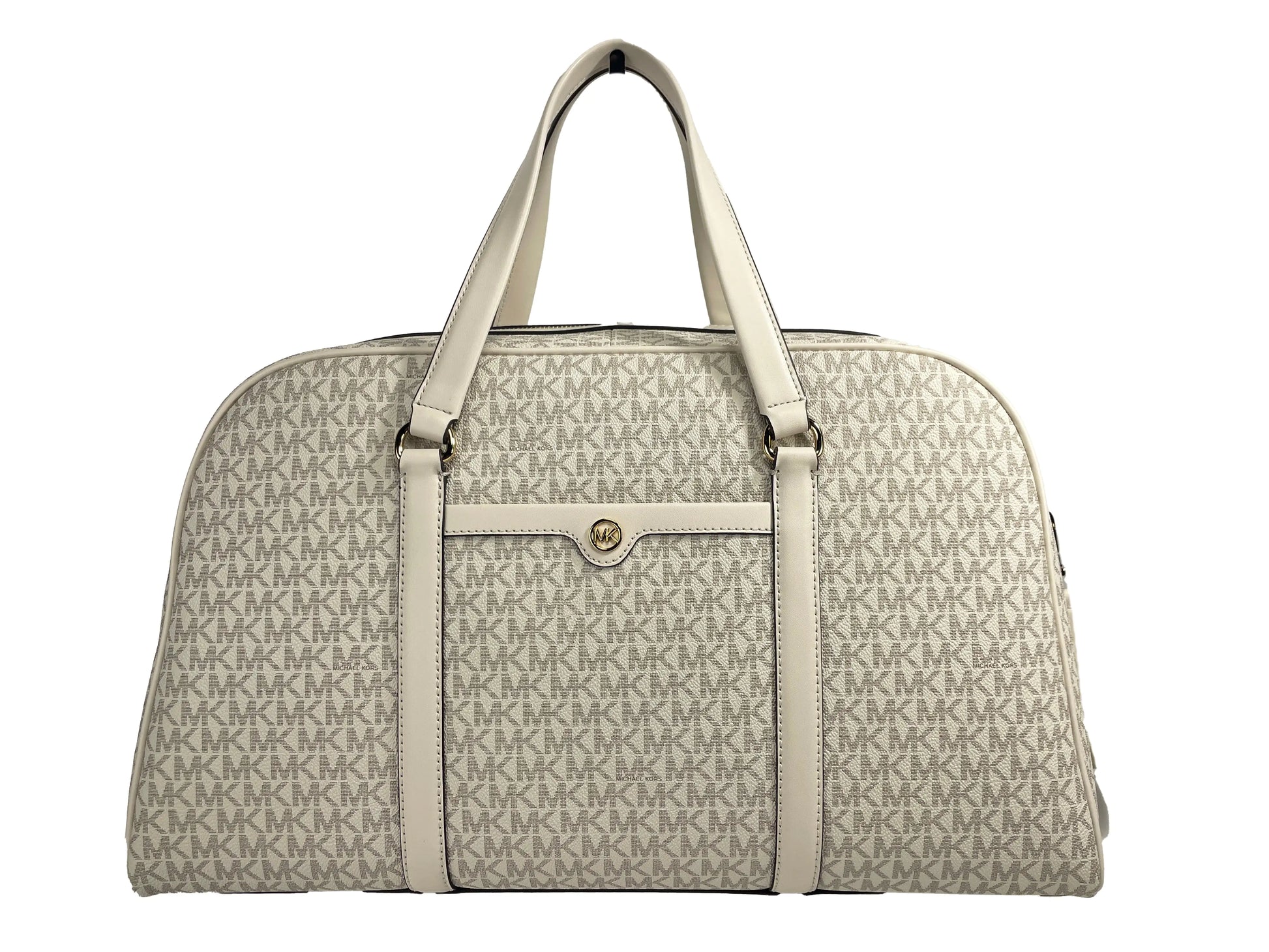 This weekender bag is crafted from signature PVC and should be cleaned according to the included care instructions to maintain its appearance. Color variations may occur due to lighting during photography. Please verify dimensions to ensure they meet your travel needs. Returns or exchanges are subject to our standard return policy. This product is an authentic Michael Kors item and comes in its original packaging. We guarantee its originality and quality.