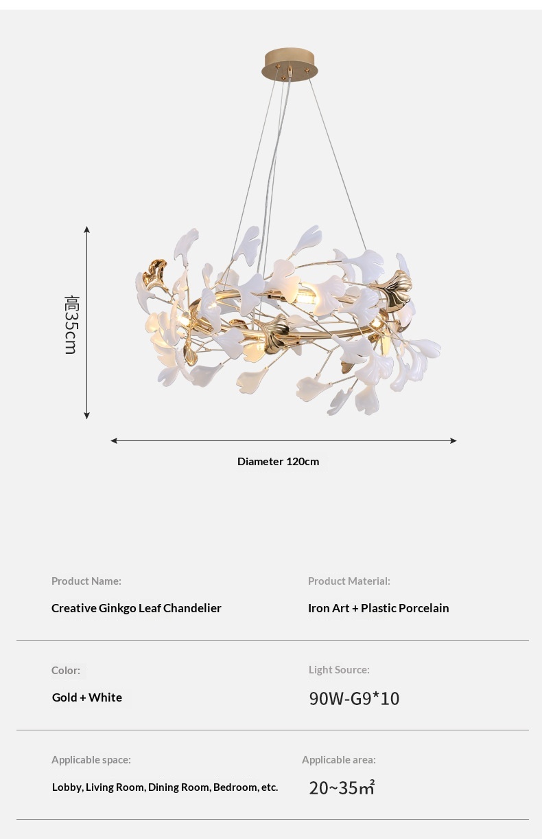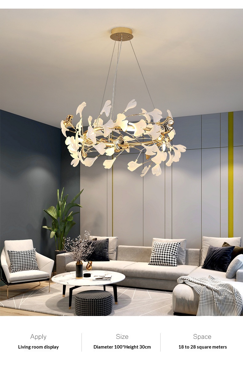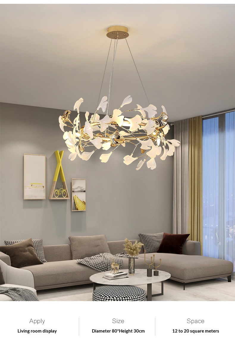 Minimalist Art Chandelier With Ginkgo Leaf Design