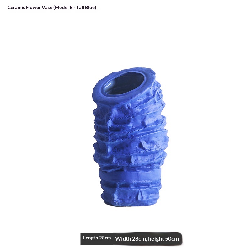 Style B ceramic vase: Matte blue, tall design (28 cm long × 28 cm wide × 50 cm high)