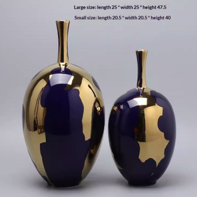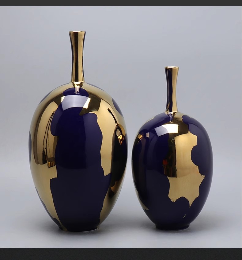 Modern Gem Blue Gold Plated Light Luxury Style Tall Vase Ornament
