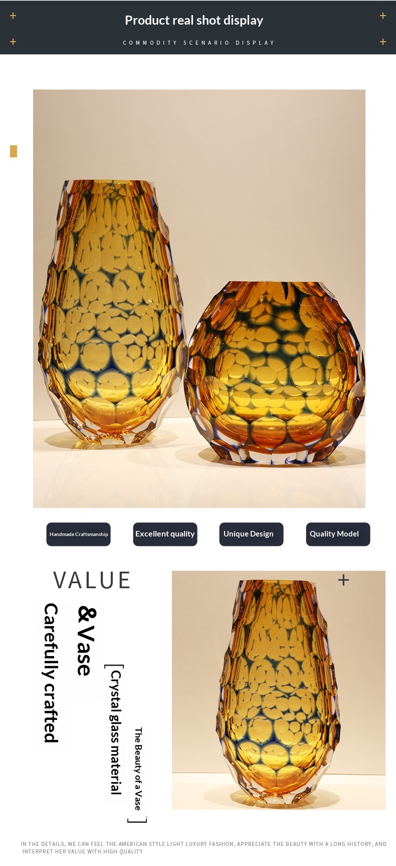 Modern Minimalist Handmade Cut Glass Vase Home Style