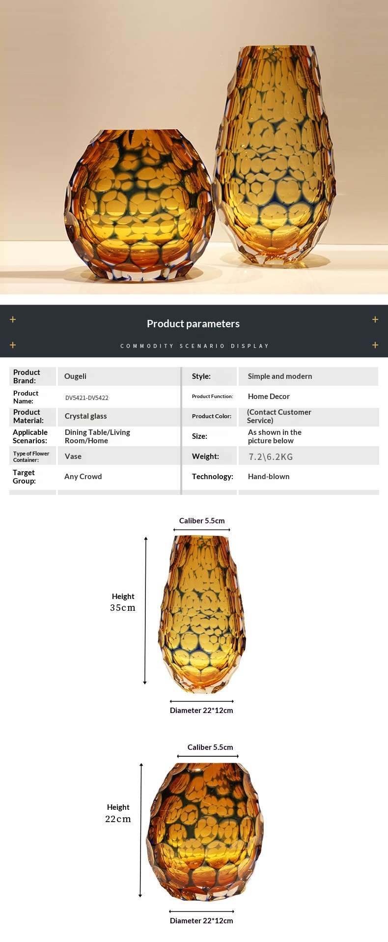 Dimensions: ODV5421 (Height 35, Diameter 22*12, Mouth 5.5, Weight 7.2kg), ODV5422 (Height 22, Diameter 22*12, Mouth 5.5, Weight 6.2kg)