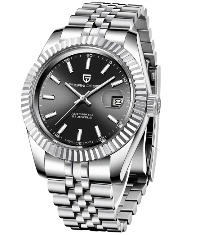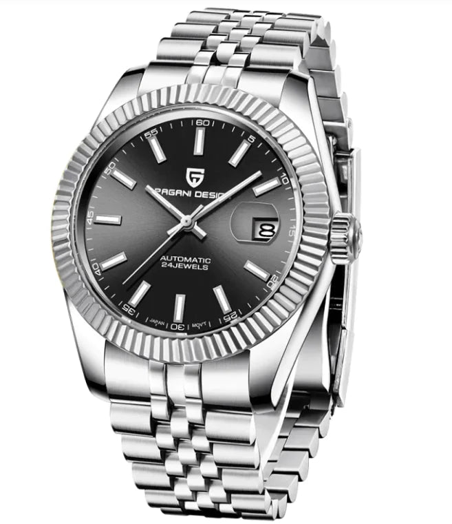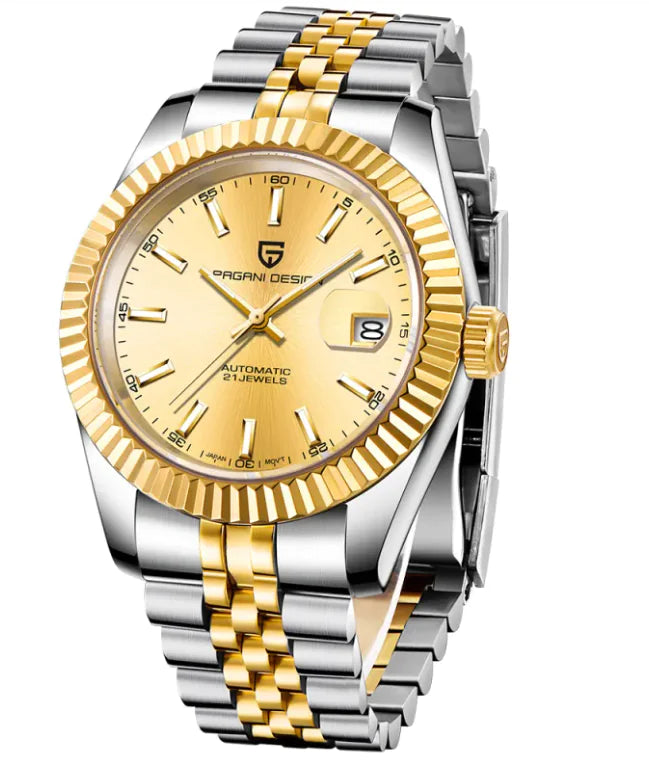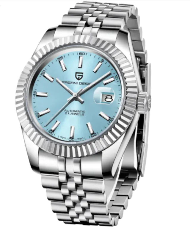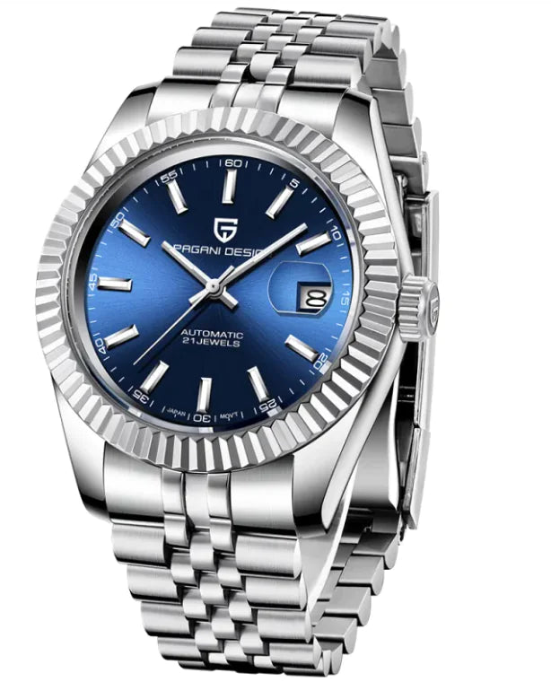 Discover the perfect balance of form and function with this refined timepiece, powered by the trusted Japan Citizen 8215 automatic movement. Housed in a durable stainless steel case and protected by scratch-resistant sapphire synthetic glass, this 42mm watch is made to withstand everyday wear with effortless elegance. Choose from a variety of sleek color and strap options — from gold-accented steel belts to minimalist white or bold blue dials. With water resistance up to 30 meters, this watch is ready for your daily routine with timeless appeal.