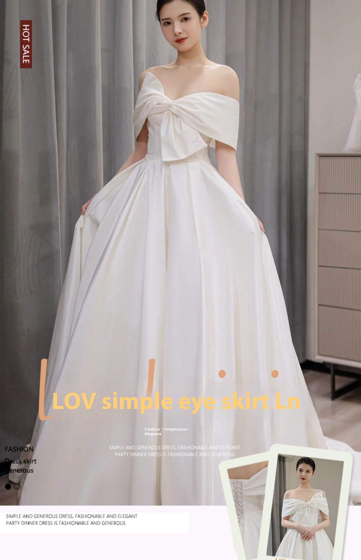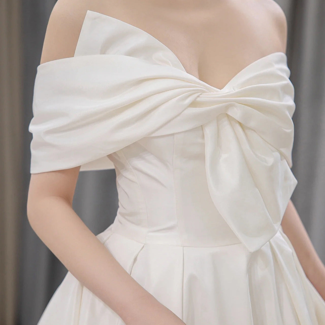 Satin Light Wedding Dress French Trip Shoot Simple