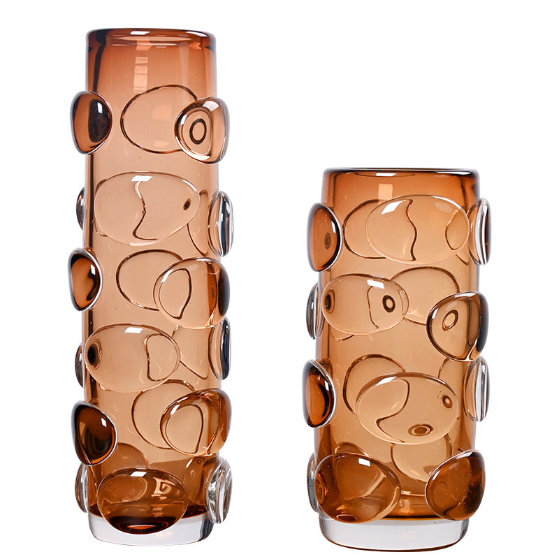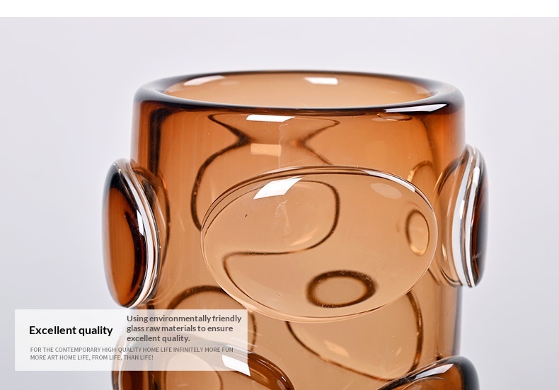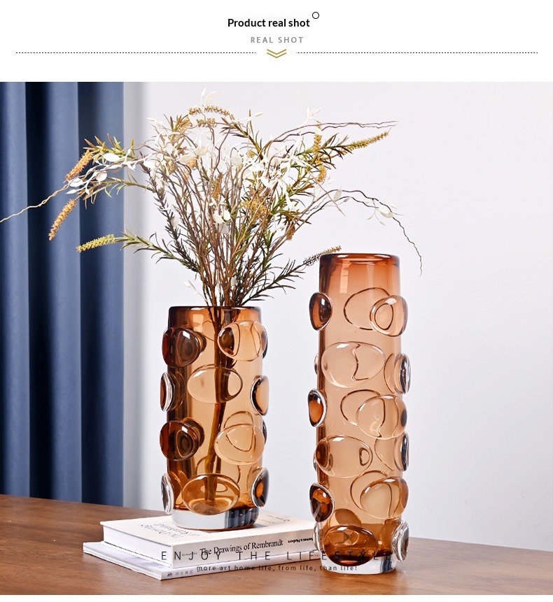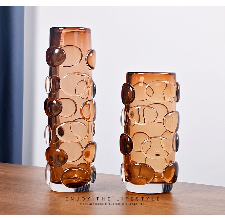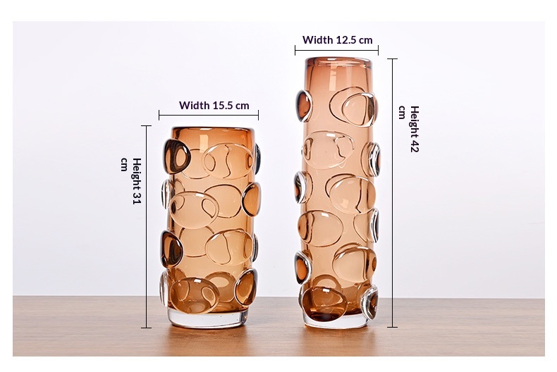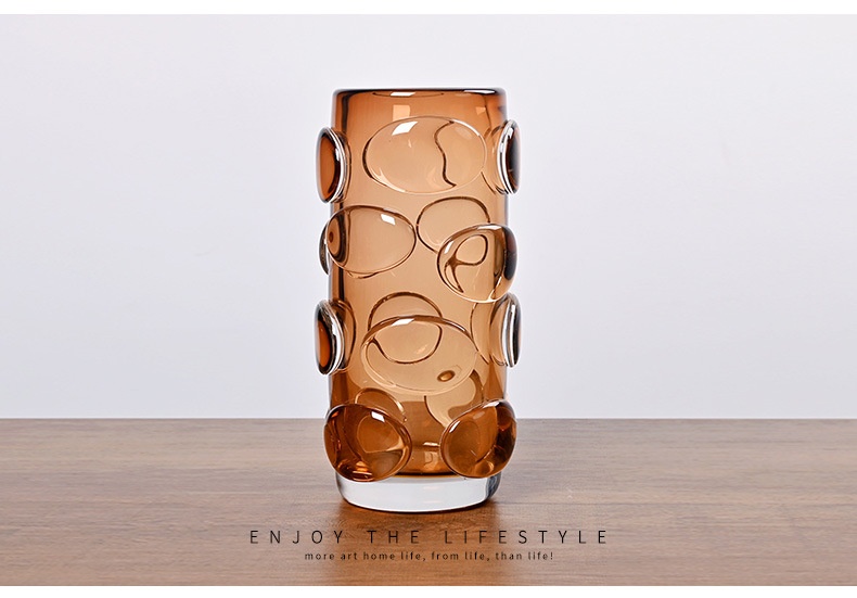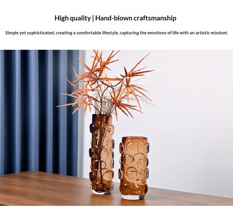 Simple And Luxurious Straight Transparent Brown Glass Vase