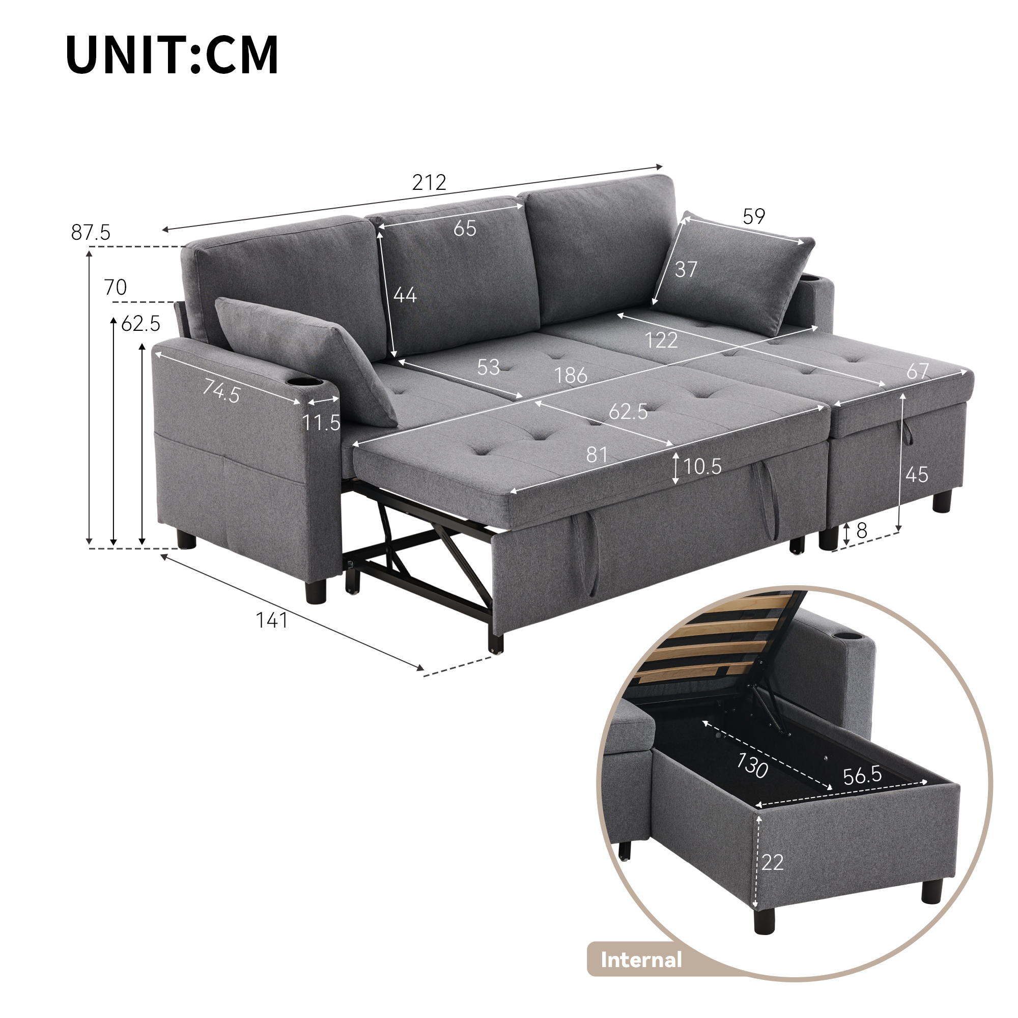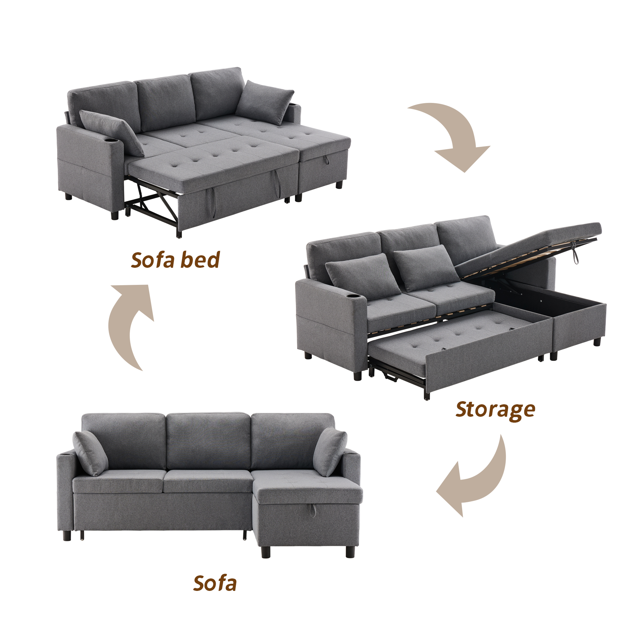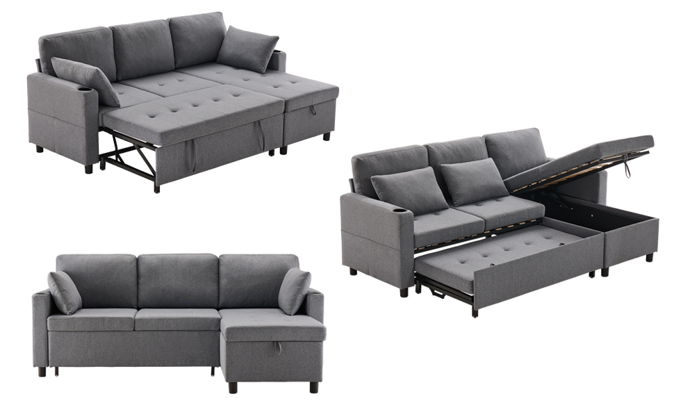 Product Name:=N605P2244131415G Sofa Bed, L-Shaped Corner Sofa, 3 Seater Pull out Sofa with Storage, Convertible Settee Sectional Sofa for Living Room, Office, Grey