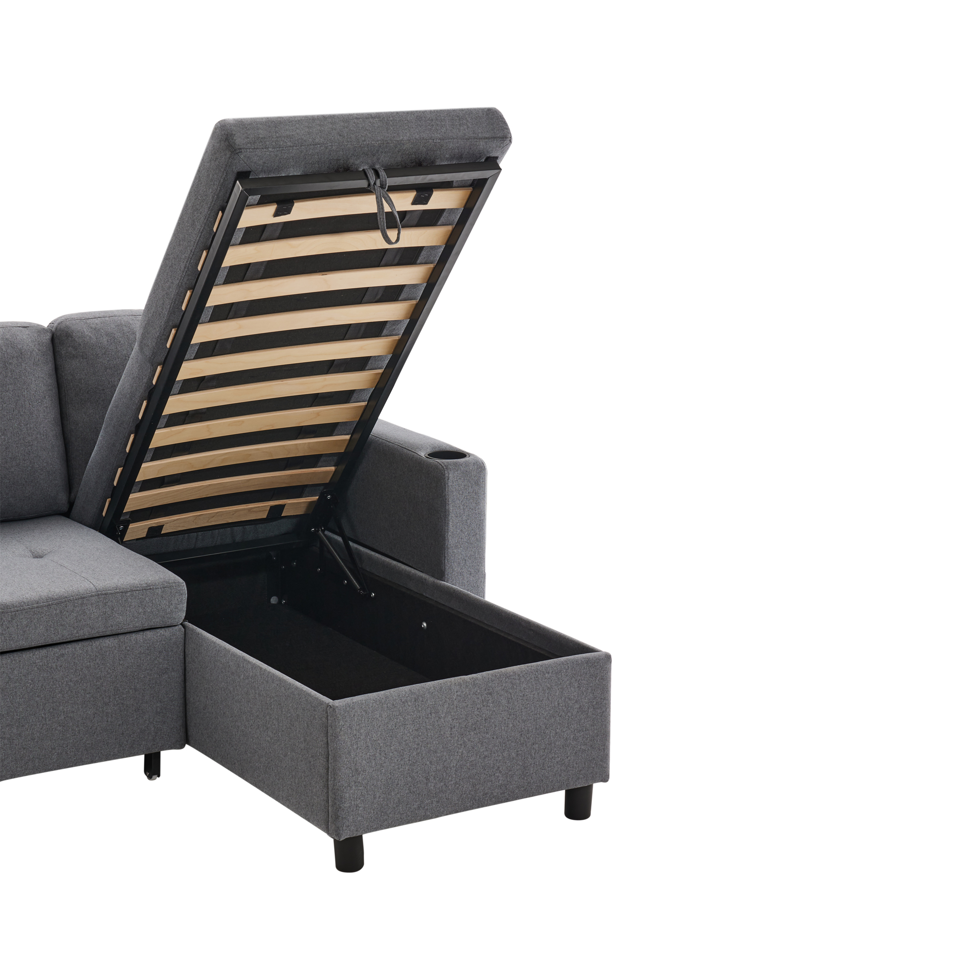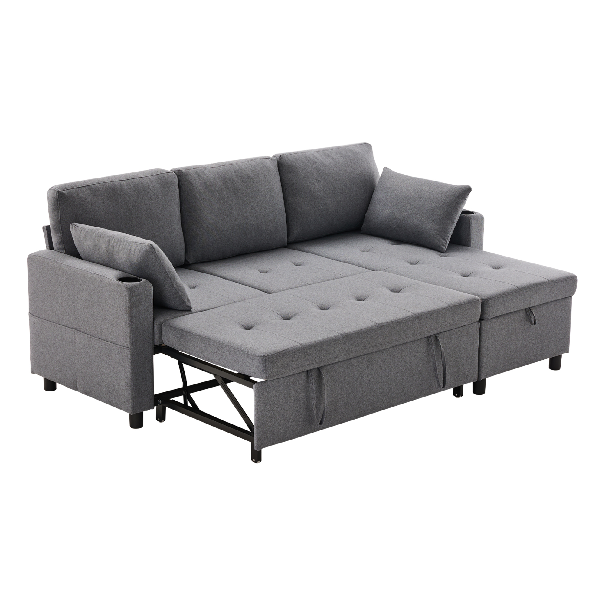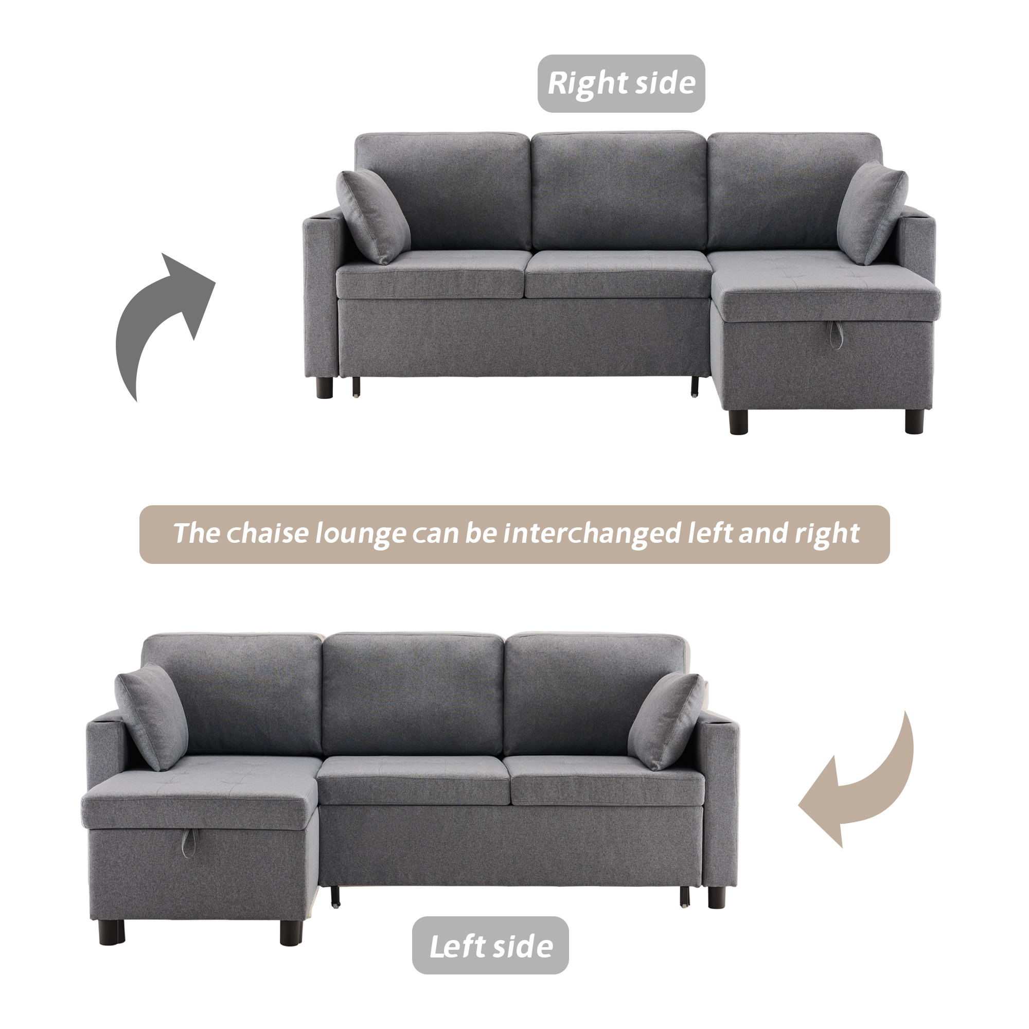 Product Name:=N605P2244131415G Sofa Bed, L-Shaped Corner Sofa, 3 Seater Pull out Sofa with Storage, Convertible Settee Sectional Sofa for Living Room, Office, Grey