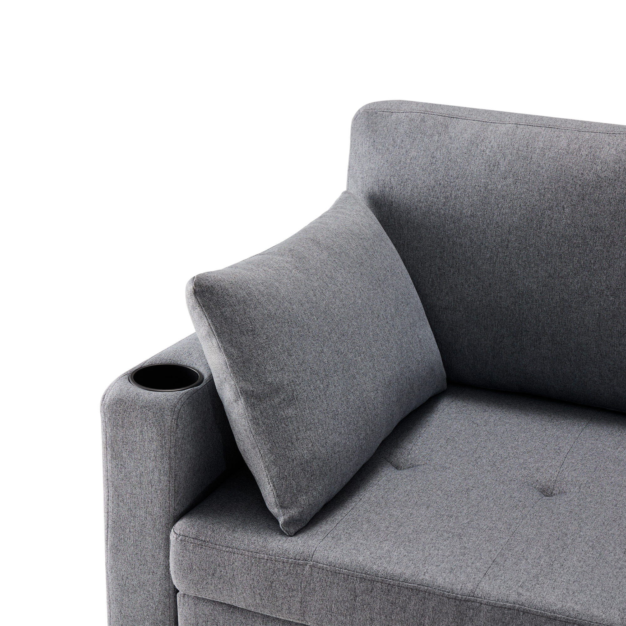 - 【Cup Holders & Pockets】The sofa features armrests with built-in plastic cup holders and magazine pockets on both sides. This design offers convenience and functionality, perfect for enjoying drinks and keeping reading materials within reach, enhancing comfort and organization in any living space. Ideal for modern homes and cozy relaxation areas.
