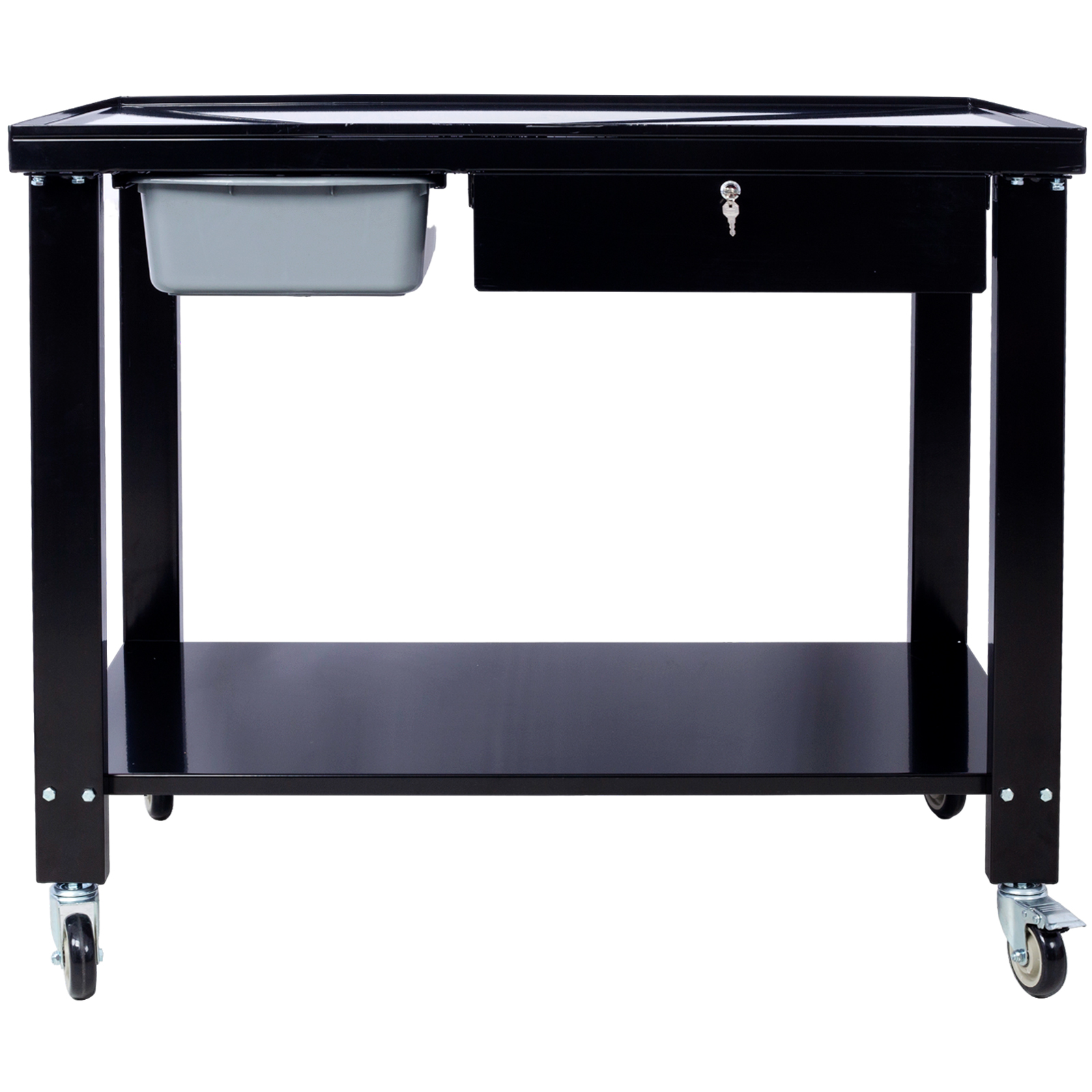 Transmission Teardown Work Station 1 2 Ton Capacity Sloping Drain Table Locking Drawer Removable Drain Basin Full-Width Lower Shelf Four 4-Inch Caster Wheels Black