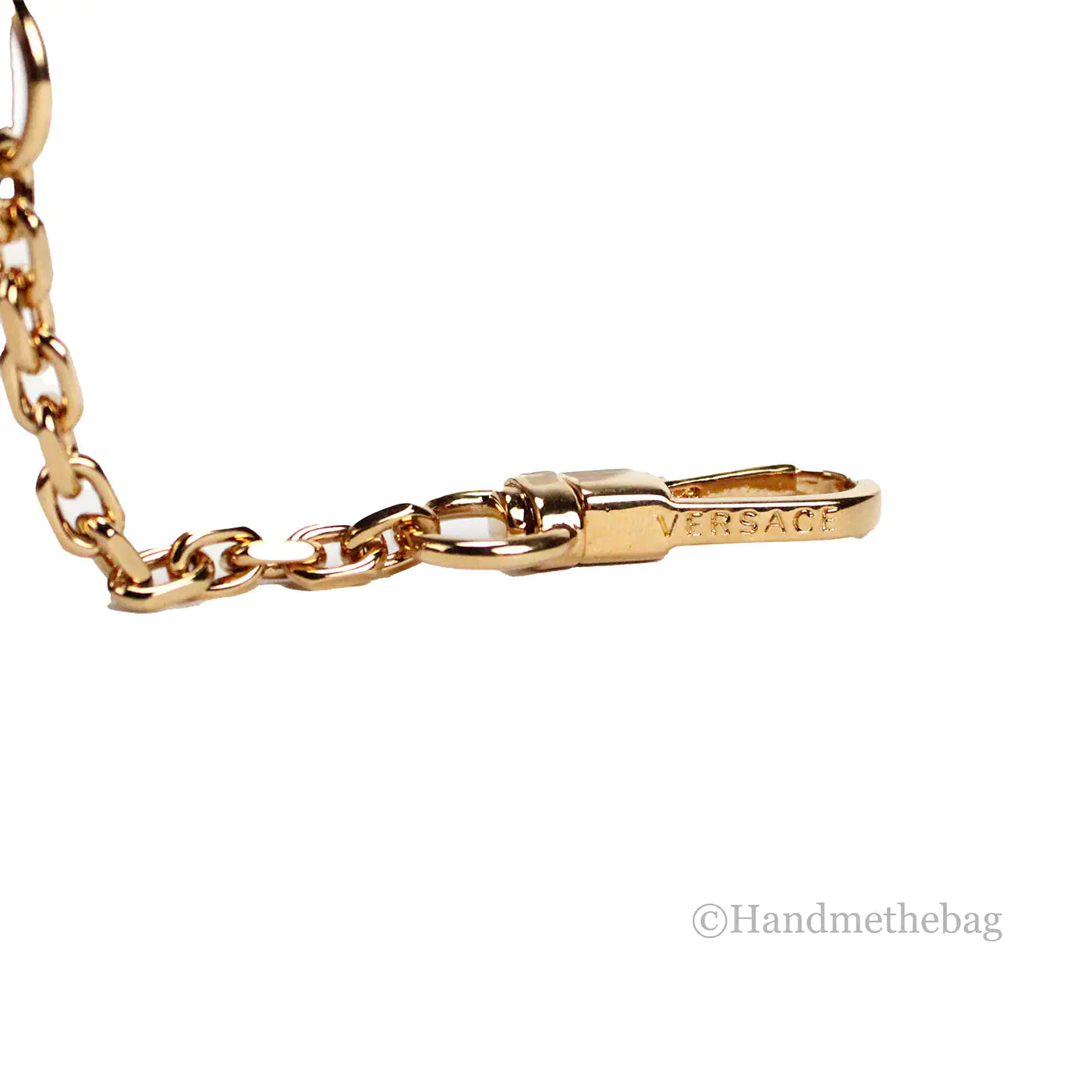 Designed with both functionality and style in mind, this compact wallet features four outer card slots, providing easy access to your most-used cards. The zip pouch offers secure storage for cash or coins, while the iconic mini Medusa head hardware adds a signature touch of Versace glamour. With an attached key ring, this card case is not only a wallet but also a versatile accessory that can be attached to your bag or belt loop for added convenience.